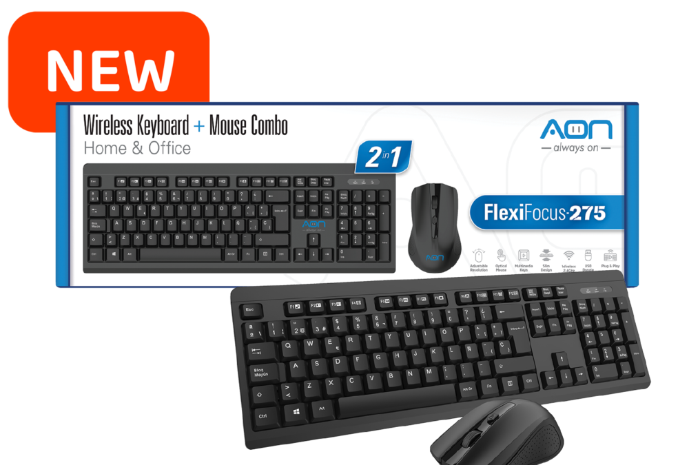 Combo Teclado y Mouse Inalambrico AON Flexifocus -275 AO-KB-1001